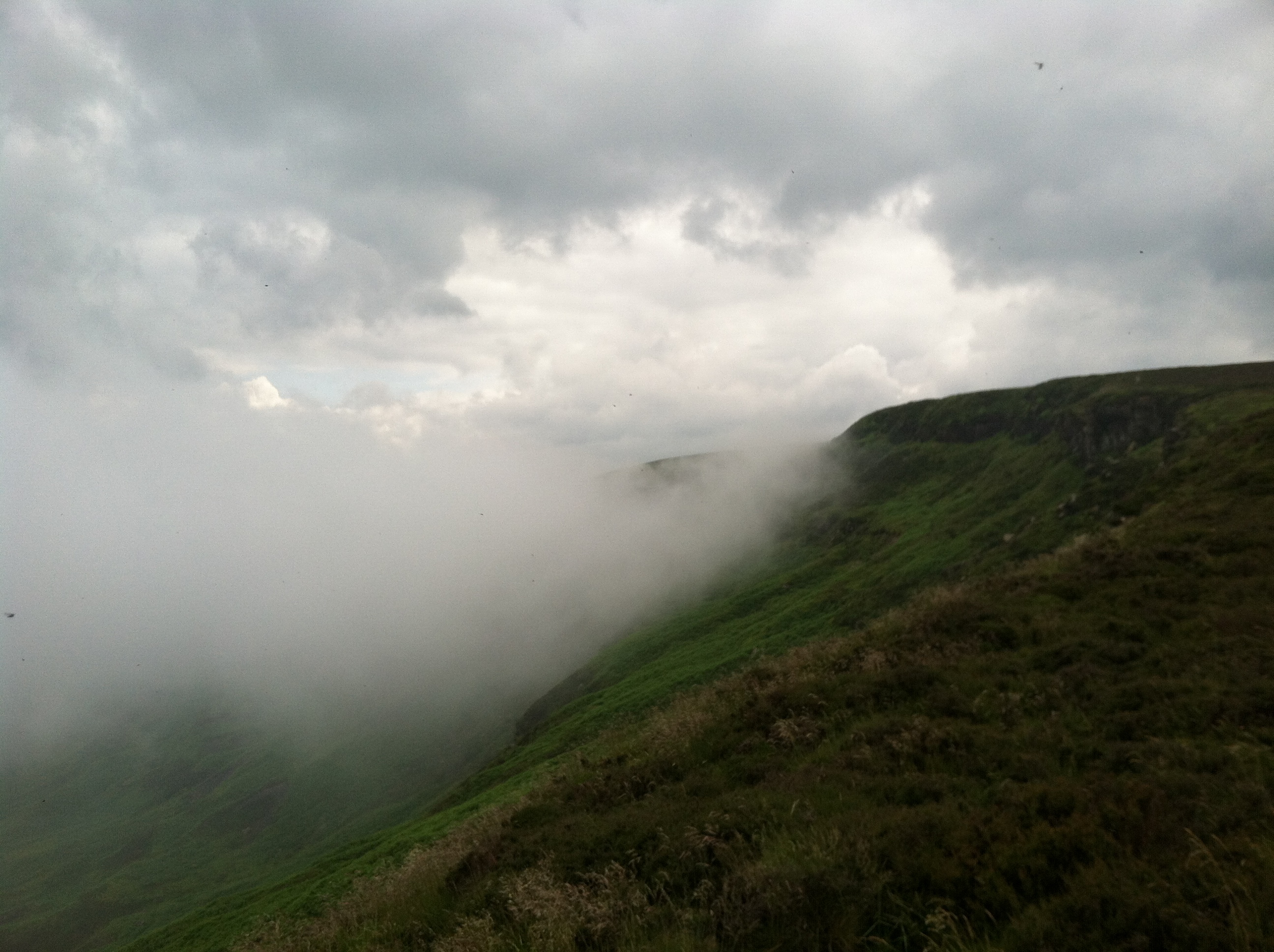 The clouds were still piled into the valley to the north and for several miles we walked along the lip of the mist, coming up to the crest of the moor then threading away over our heads.