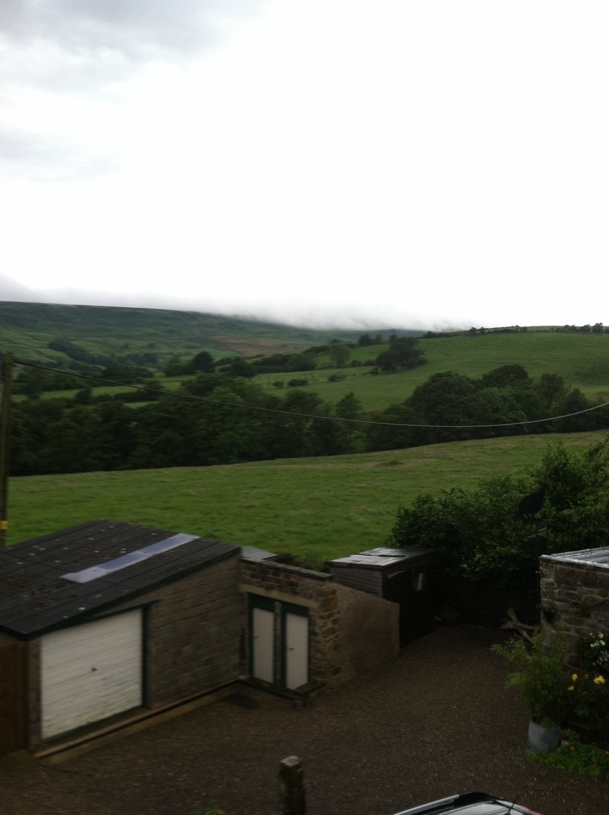 It rained a bit, as usual, and as we started the steep ascent up Live Moor we walked into a cloud. All we could see was each other spread out on the track (mostly an amazing path of set stones and steps – who did all that work?) and the heather stretching off into the fog. We all stopped to admire one blooming patch – mostly heather blooms in August.