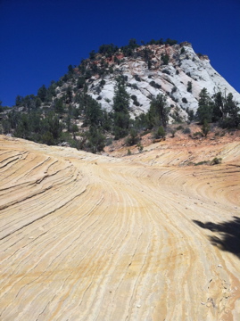 So today no one got to hike to Observation Point, which we did yesterday,  unless they did a very, very long hike in from the East Rim Trail (another 7 miles from where we turned around today, then you’d have to come back).  It was a grand hike, up through part of Echo Canyon, where the red sandstone has been washed into curves and ripples.