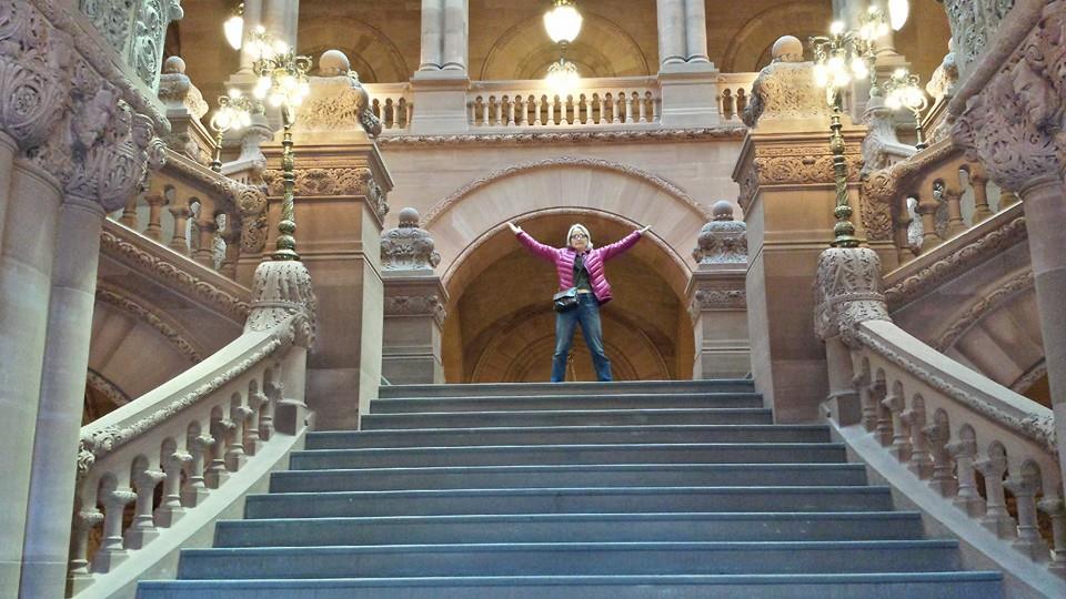 My small stone for today: standing in one of the spectacular stairwells in the New York State Capital Building this afternoon, reveling in the artistic grace of the extraordinary architecture and grand space.