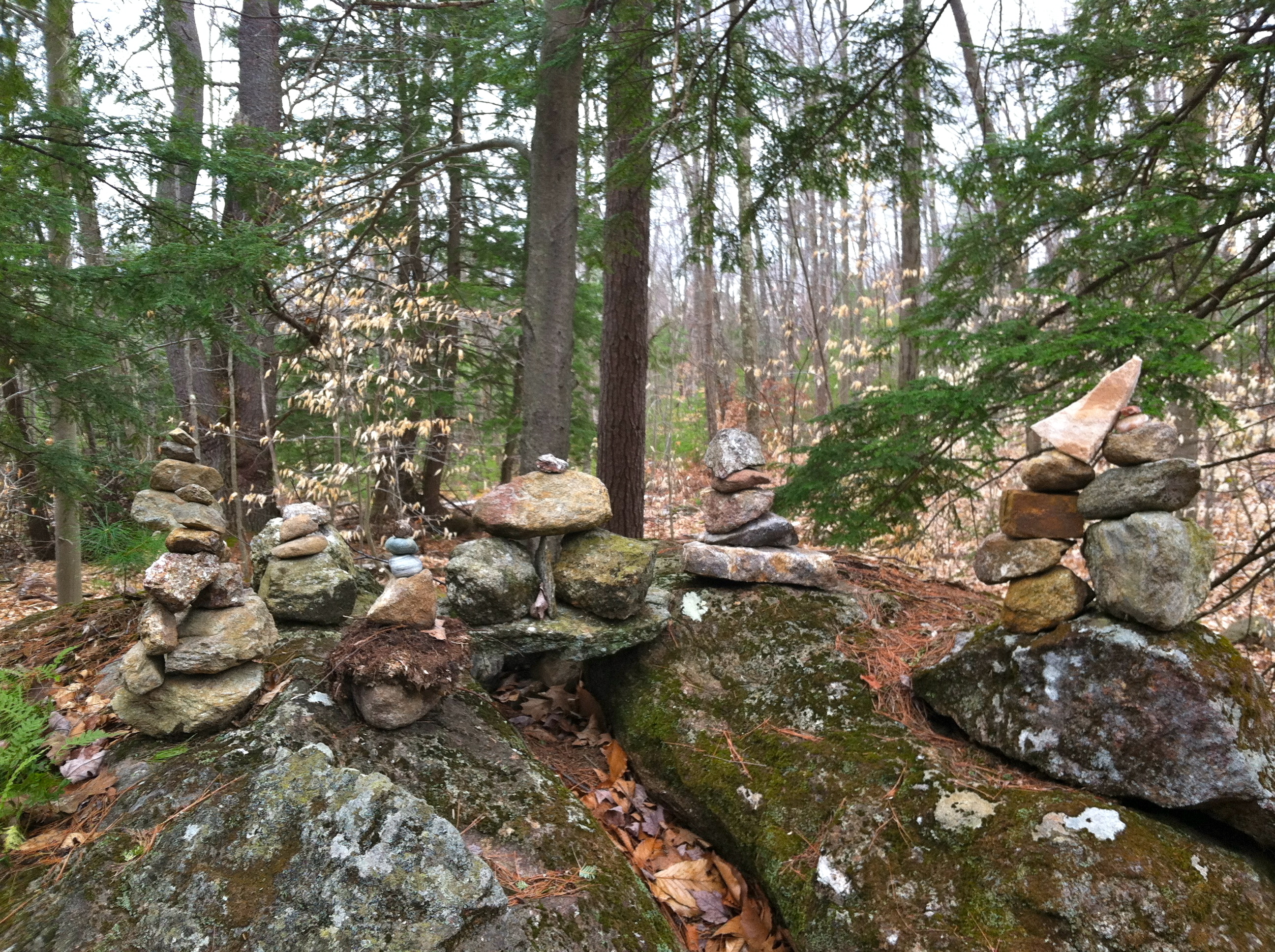 “I told the logger I hired one thing he had to be sure to to be careful of,” my neighbor said, still looking worried through all my talking about how much work he’s getting done on his land and how much better the road in the woods is now for running.  “I didn’t want anything to happen to the rock where you make stone piles.”