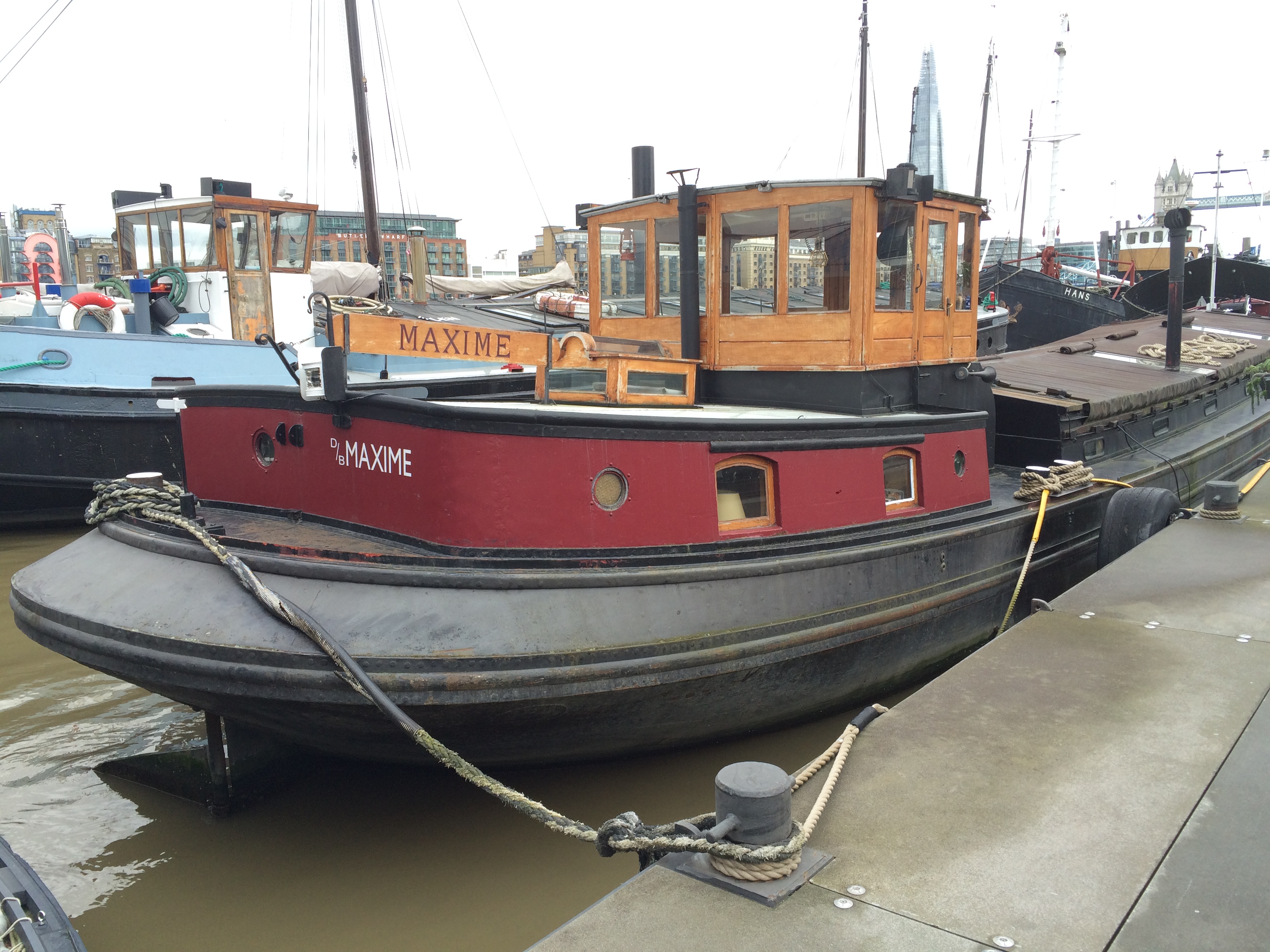 We had trouble finding Hermitage Moorings when we arrived in London on Sunday night, but we had a friendly taxi driver who was fine about driving up and down Wapping High Street, not wanting to let us out in the rain and wind without knowing we had close shelter. We finally located the address and John, our AirBnB host, came to greet us at the top of the ramp leading to the docks. As we walked down I looked up. Glorious — the Tower Bridge and the Shred building lit white against the black sky, just down river.