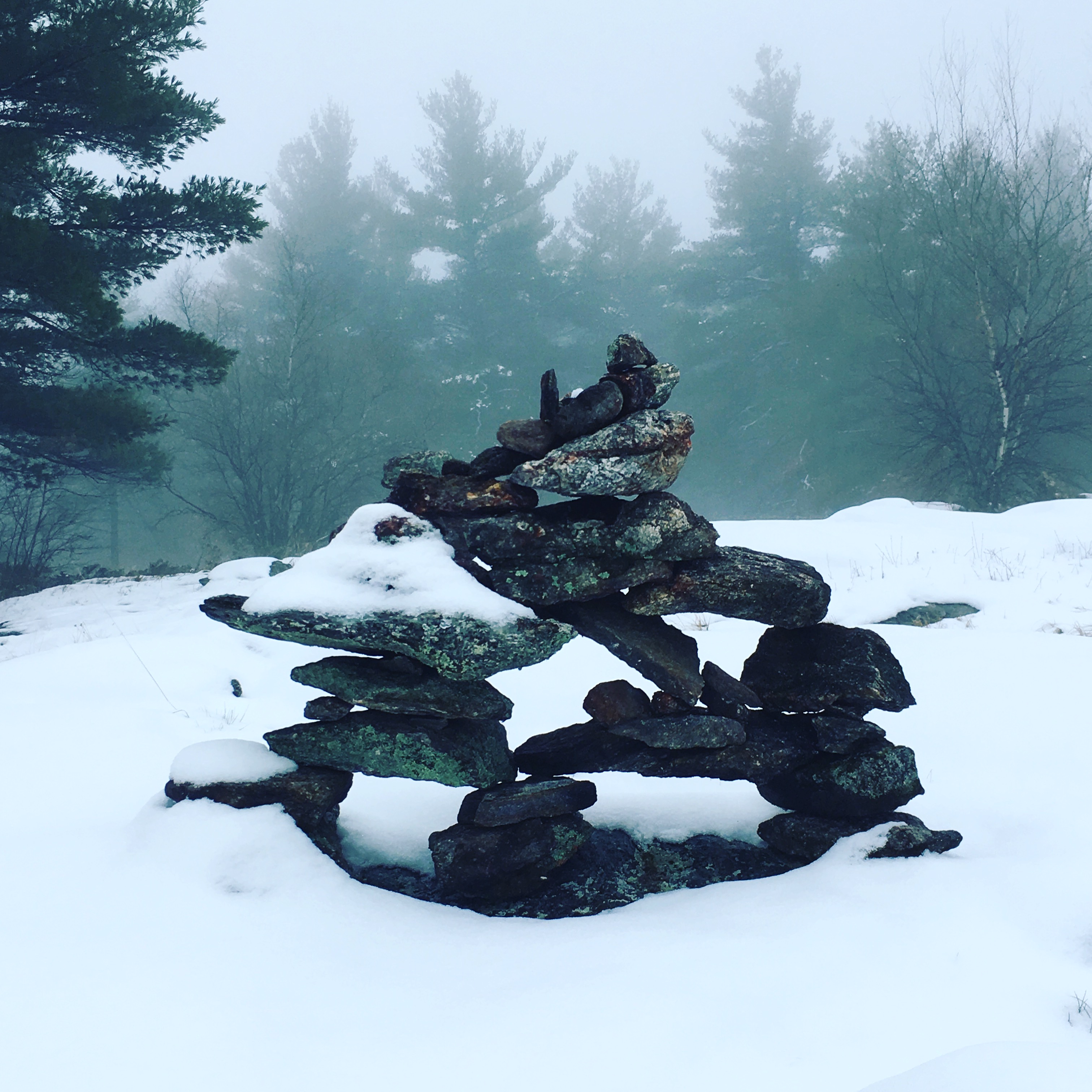 Walking across the lake on microspikes was like walking through a brilliant black and white abstract art show. Thin dark lines on the surface slit down into white and crystal waves and twists, a crack that criss-crossed countless other cracks and curled off across the lake. Patches of fine snow turned out to be collections of minuscule bubbles trapped in ice, nothing to brush off, the surface smooth under my mitten. Shards of ice cut by ice fishermen gleamed like gems in the muted sun.