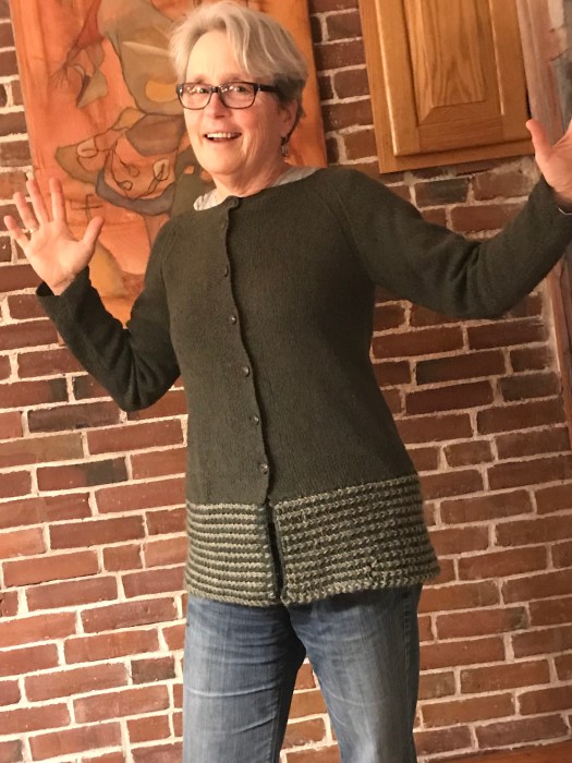 Yesterday I made things all afternoon with Alison, a friend who also loves to make things. And she knows how to sew.  With her help I lengthened  a too-short sweater by attaching the extra of an extra-long scarf to the bottom. Now my favorite sweater falls past my hips, exactly as long as I want it. I made treats for Alison to put in her freezer and she made a skirt out of another too-short sweater I never finished or wore.