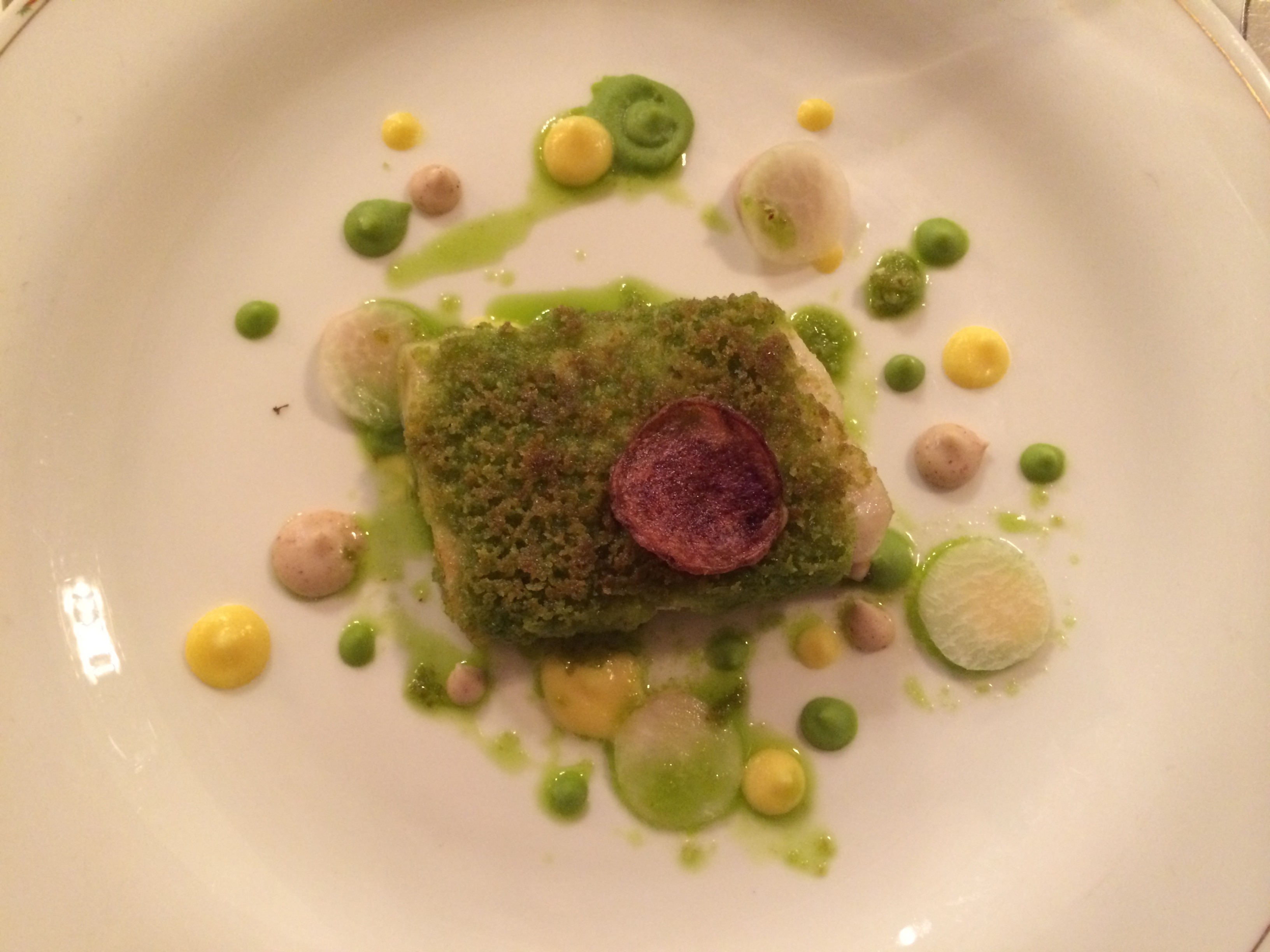 Iberico ham with preserved fig and crisp breadFillet of pike perch with chervil crust, vegetable creams and kohlrabiPoppy seed parfait and berry compote with rum